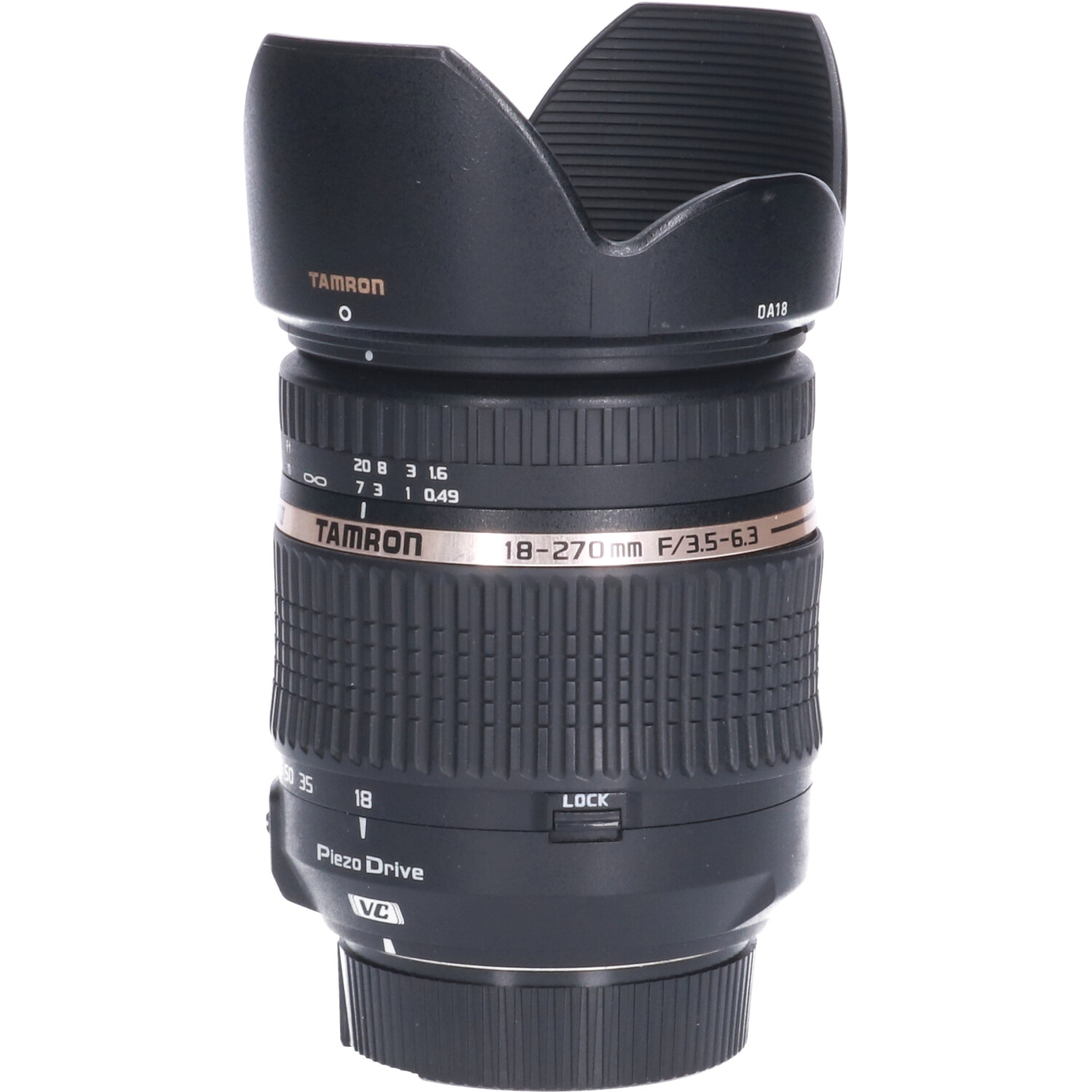 De Tamron 18-270/3.5-6.3 Di II VC PZD is een mega reiszoomlens met een bereik van 18-270mm. De lens bezit een piëzo ultrasone motor, die een stille, nauwkeurige en zeer snelle autofocus mogelijk maakt. Verder werd de unieke (VC) vibratietechnologie verbeterd om een compacter ontwerp mogelijk te maken. De lens valt op door de veelzijdige gebruiksmogelijkheden, met name door het zoombereik dat zowat elke fotografische situatie aankan. De compacte, lichtgewicht constructie maakt deze lens tot de ideale reisgenoot. Met deze lens kunt u alles fotograferen, van groothoek voor landschap tot tele voor close-up fotografie en is tevens geschikt voor licht macrowerk, met een max. vergrotingsmaatstaf van 1:3,8 over het gehele zoombereik om kleine voorwerpen groot weer te kunnen geven.