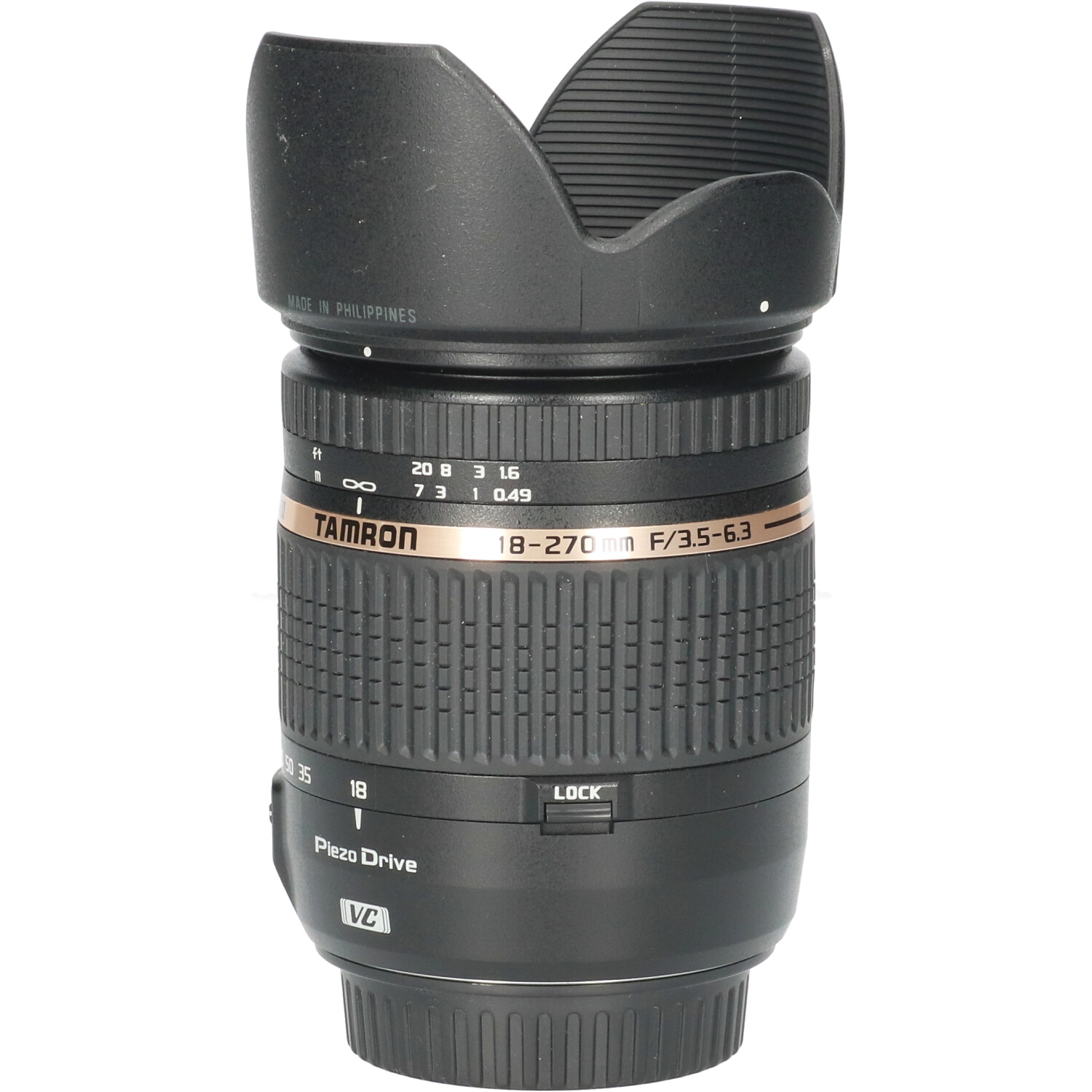 De Tamron 18-270/3.5-6.3 Di II VC PZD is een mega reiszoomlens met een bereik van 18-270mm. De lens bezit een piëzo ultrasone motor, die een stille, nauwkeurige en zeer snelle autofocus mogelijk maakt. Verder werd de unieke (VC) vibratietechnologie verbeterd om een compacter ontwerp mogelijk te maken. De lens valt op door de veelzijdige gebruiksmogelijkheden, met name door het zoombereik dat zowat elke fotografische situatie aankan. De compacte, lichtgewicht constructie maakt deze lens tot de ideale reisgenoot. Met deze lens kunt u alles fotograferen, van groothoek voor landschap tot tele voor close-up fotografie en is tevens geschikt voor licht macrowerk, met een max. vergrotingsmaatstaf van 1:3,8 over het gehele zoombereik om kleine voorwerpen groot weer te kunnen geven.