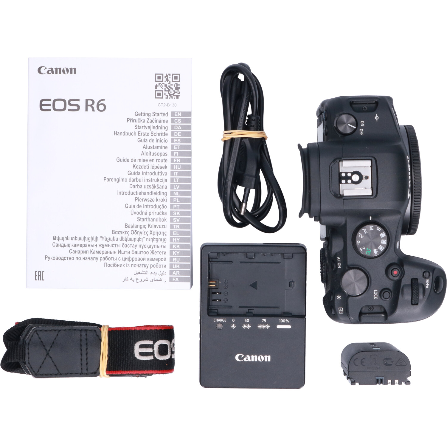 De EOS R6 wordt gevoed door een nieuwe en nog krachtigere LP-E6NH-accu, die ongeveer 14 procent meer capaciteit heeft dan de oude LP-E6N-accu. LP-E6NH-accu's kunnen worden opgeladen met de meegeleverde acculader of in de camera via de USB C 3.1-aansluiting, met Canon's PD-E1 voedingsadapter of een voedingsbron met voedingscapaciteit (PD). De BG-R10 battery grip is ook beschikbaar, waarin twee accu's tegelijk kunnen worden geplaatst voor langere gebruiksduur.