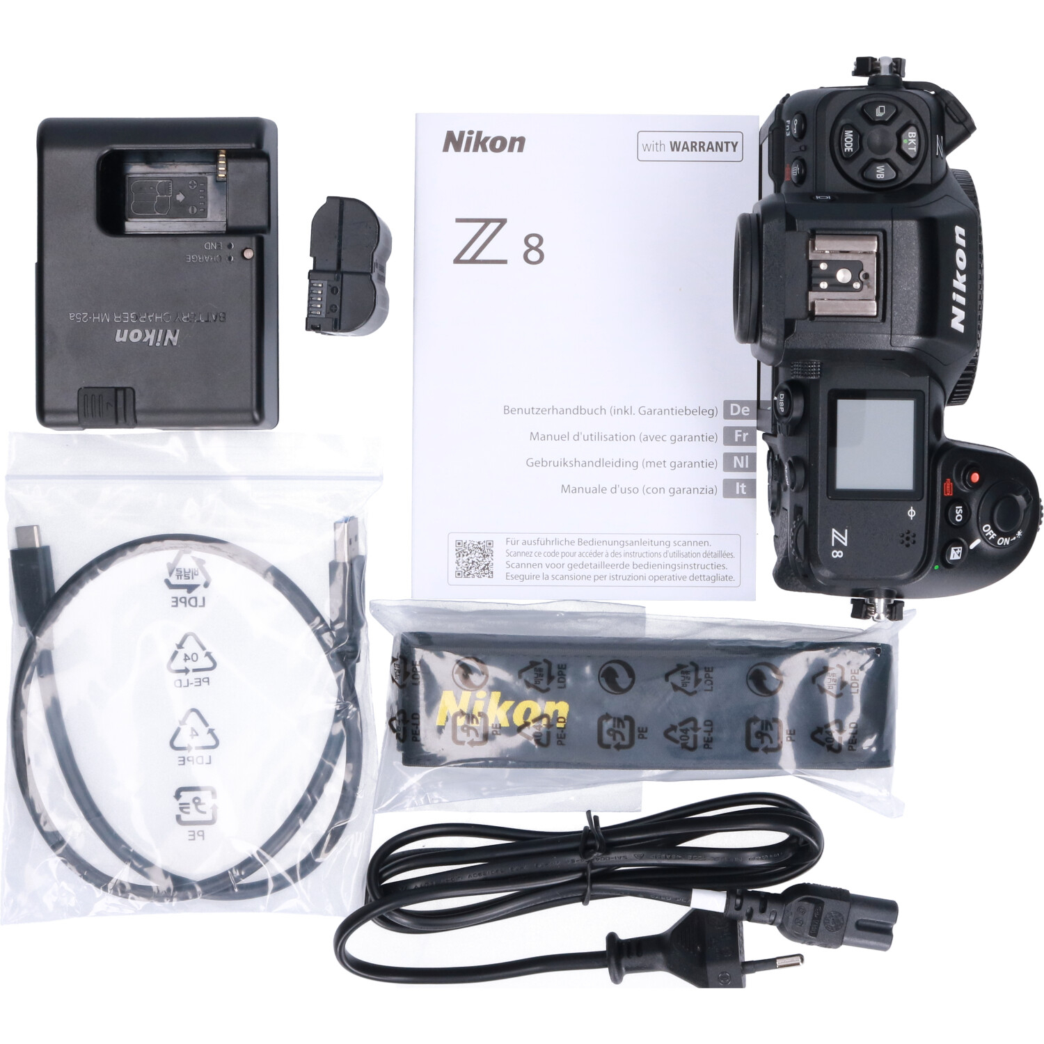 De Nikon Z8 is uitgerust met Bluetooth en Wi-Fi-connectiviteit, waardoor je je foto's en video's gemakkelijk kunt overzetten naar je smartphone of tablet. De camera wordt geleverd met een EN-EL15C accu die tot 275 foto's per lading kan maken. Voor extra vermogen is een externe batterijgreep beschikbaar.