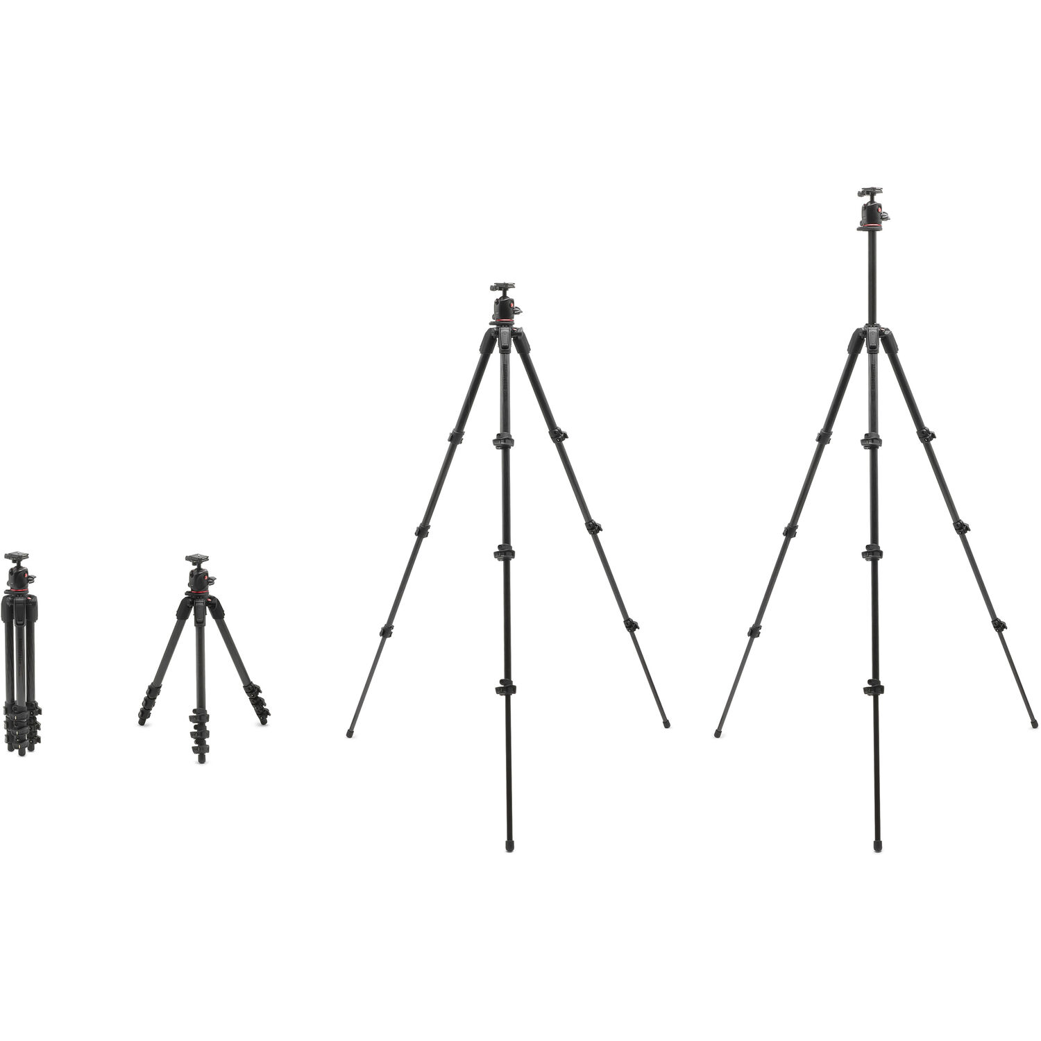 De 4-delige poten maken een variabele hoogte-instelling mogelijk, met een maximale werkhoogte van 181,5 cm en een minimale hoogte van slechts 10 cm. Hierdoor kun je laag bij de grond fotograferen of juist op ooghoogte werken zonder concessies te doen aan stabiliteit. De poten zijn voorzien van de Quick Power Lock-klemmen voor snelle en veilige verstelling.