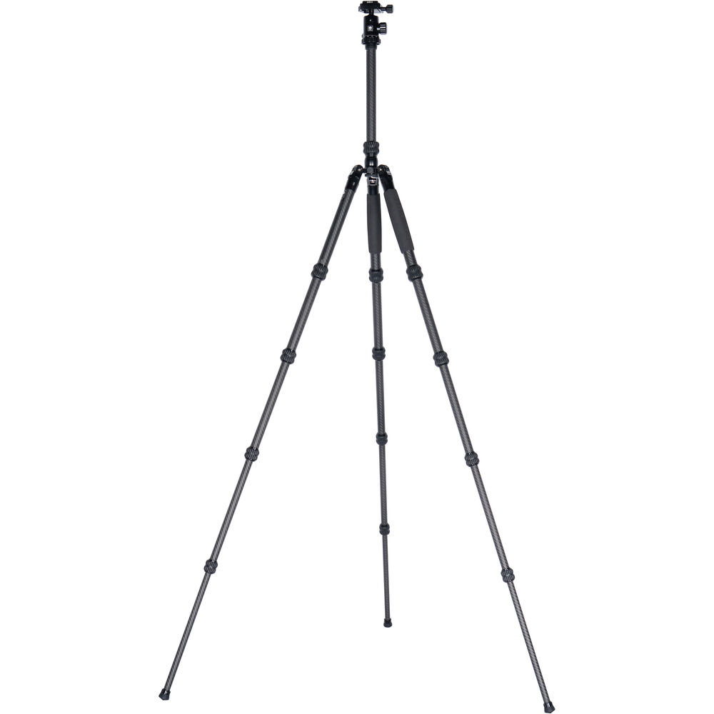 De T-1205 Carbon Fiber Reisstatief met E-10 Balhoofd van Sirui is een veelzijdig, lichtgewicht en draagbaar reisstatief met een maximale hoogte van 163,6 cm en een draagvermogen van 8 kg. Met zijn omgekeerde inklapbare poten kan het statief compact worden opgevouwen tot slechts 43 cm en weegt het slechts 1.59 kg, waardoor het gemakkelijk overal mee naartoe te nemen is waar het nodig is. De T-1205 wordt geleverd met een volledige middenkolom en een korte middenkolom die eenvoudig kan worden verwisseld voor een laag camerastandpunt of macrofotografie.