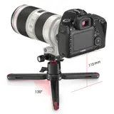 Ondanks zijn kleine formaat is het mini-statief verrassend stevig. Gemaakt van aluminiumlegering biedt hij een draagvermogen tot 5 kg, waardoor hij geschikt is voor alles van smartphones en action cams tot spiegelloze camera's en lichte DSLRs.