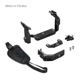De kit bevat een bovenhandgreep en een zijhandgreep, beide ergonomisch ontworpen voor een stabiele grip. De bovenhandgreep is voorzien van een siliconen afwerking voor comfort en controle, terwijl de zijhandgreep snel in hoek verstelbaar is. Dit maakt handheld- en low-angle shots eenvoudiger en comfortabeler.