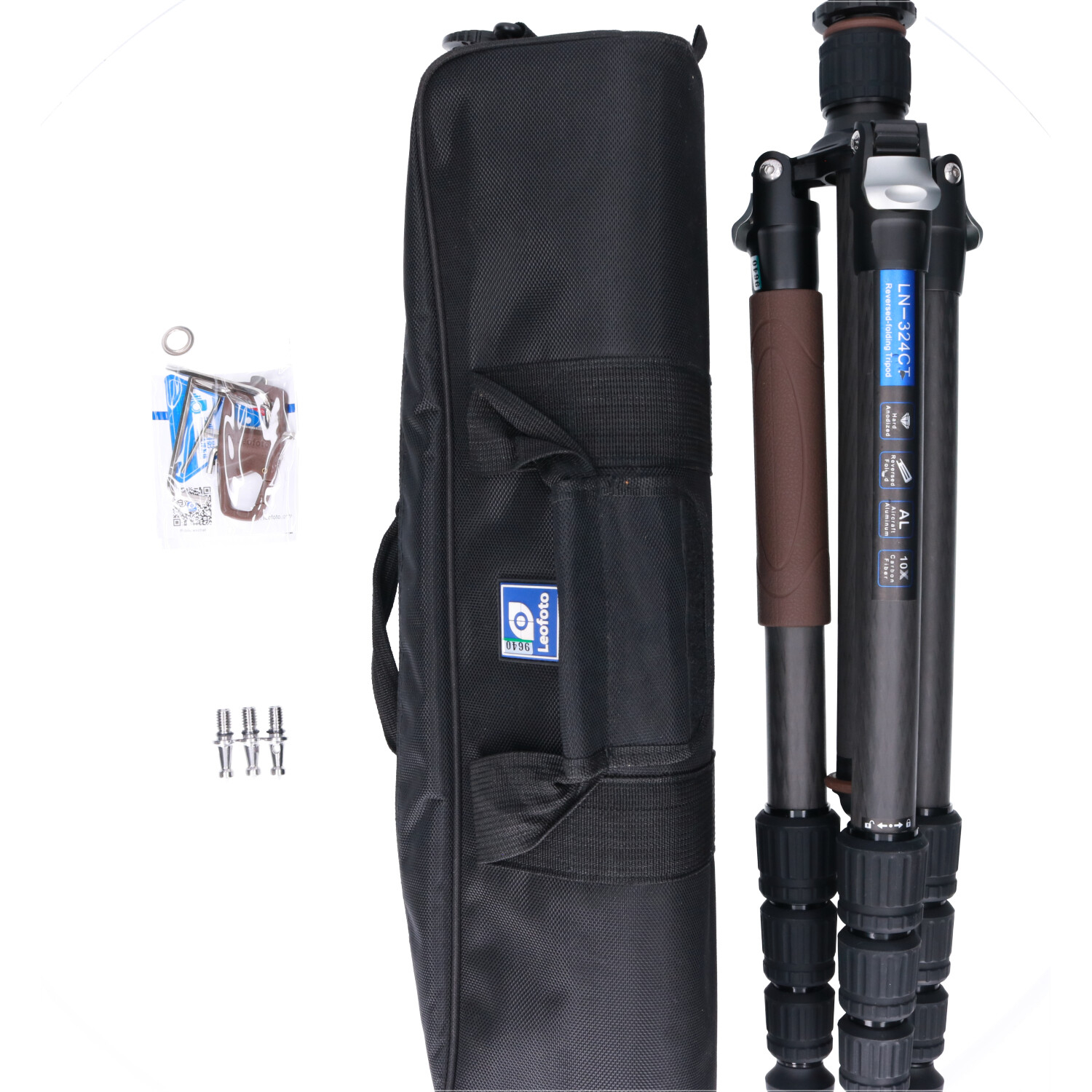 De sterke carbon statiefpoten van de LN-284CH bestaan uit vier soepel uitschuifbare secties met een pootdiameter van maximaal 28mm. Ze hebben een schroefvergrendeling oftewel twistlock. Je schroeft de statiefpoten dus met een simpele draaibeweging aan de vergrendelingsschroeven eenvoudig los en vast, zelfs met één hand. De statiefpoten zijn voorzien van afneembare, schokabsorberende rubber voetjes voor een stabiele grip op iedere ondergrond. Mochten de omstandigheden het noodzakelijk maken, dan zijn ze razendsnel te verwisselen voor de meegeleverde roestvrijstalen spikes. Leofoto heeft op een van de statiefpoten een bruine silica foambekleding aangebracht om koude handen te voorkomen tijdens het dragen en vasthouden.