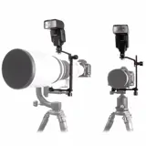 Wimberley's F-1 Telephoto Combo Flash Bracket is ideaal om te gebruiken met een lens die is uitgerust met een statiefkraag (met een Arca-type plaatlengte die geschikt is voor de grootte van de bevestigde lens) en met de toevoeging van de Module 8 loodrechte plaat, kunt u gebruik het ook met een camera. Met Module 1 heb je de mogelijkheid om de verticale afstand tussen flitser en lens aan te passen, evenals de mogelijkheid om de flitser uit het midden van de lens te plaatsen. Zoals bij alle Wimberley Shape Shifter-componenten, en in tegenstelling tot de producten van andere fabrikanten, zitten de onderdelen vast om te voorkomen dat ze per ongeluk te ver worden losgeschroefd terwijl ze in gebruik zijn.