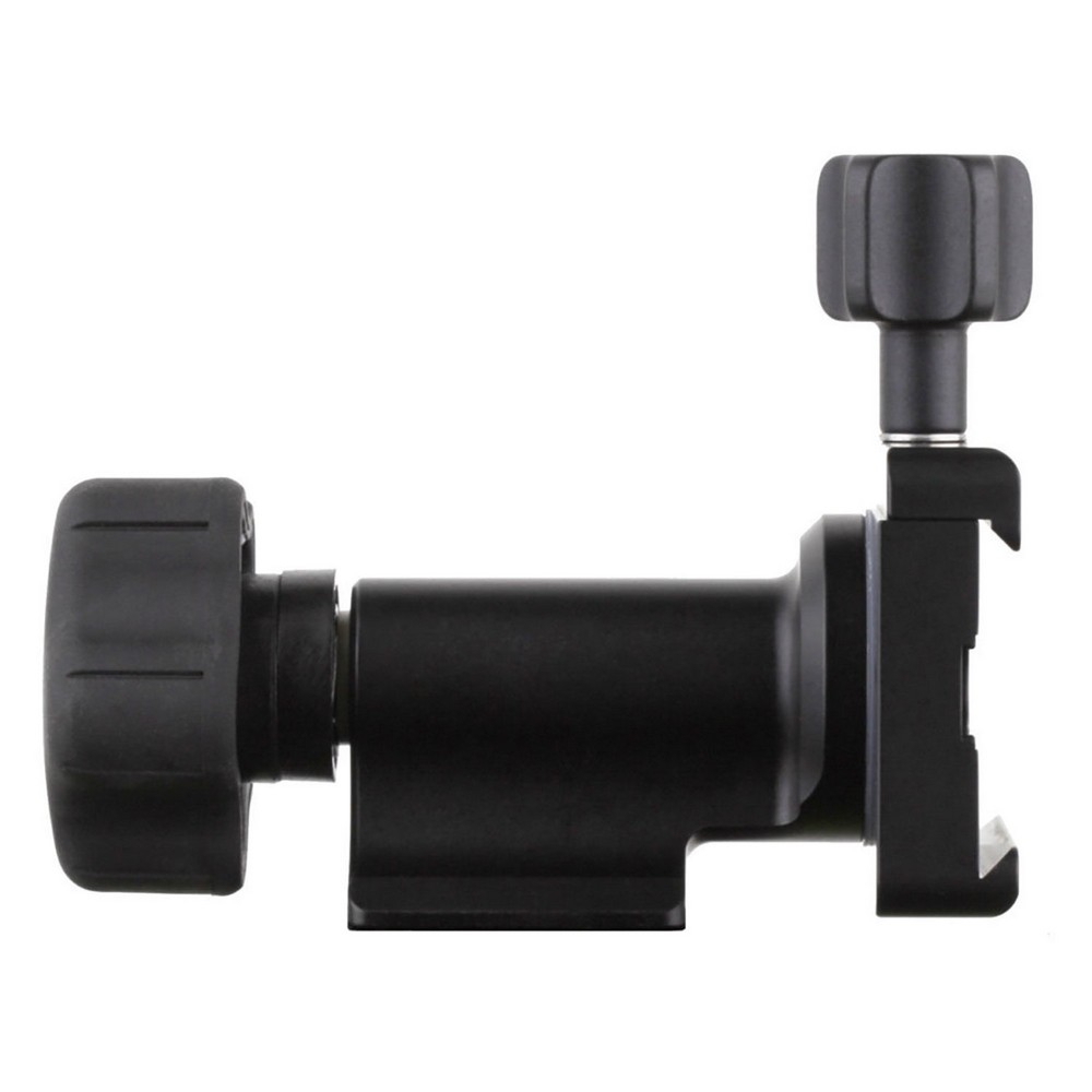 De kantelknop kan worden vastgedraaid om de lens op zijn plaats te vergrendelen, of iets losser om beweging met voldoende weerstand mogelijk te maken om te voorkomen dat de lens gaat floppen. De grote gelobde knop is gemakkelijk te hanteren, zelfs met handschoenen aan.