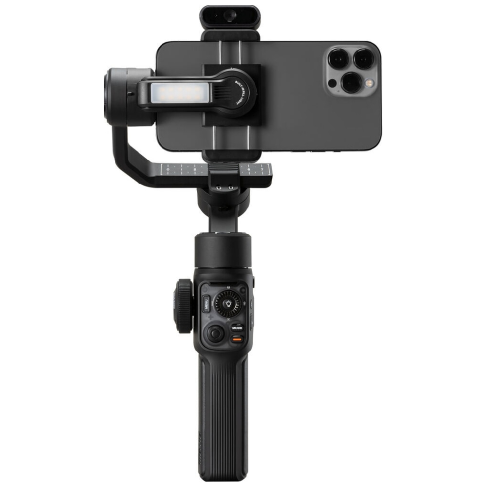 De Smooth 5S AI is ontworpen met veelzijdigheid en gebruiksgemak in gedachten. Hij ondersteunt zowel horizontale als verticale opnamen, waardoor je gemakkelijk kunt schakelen tussen verschillende opnameformaten. Bovendien is de gimbal compatibel met een breed scala aan smartphones, en dankzij het intuïtieve bedieningspaneel is hij eenvoudig in gebruik, zelfs voor beginners.