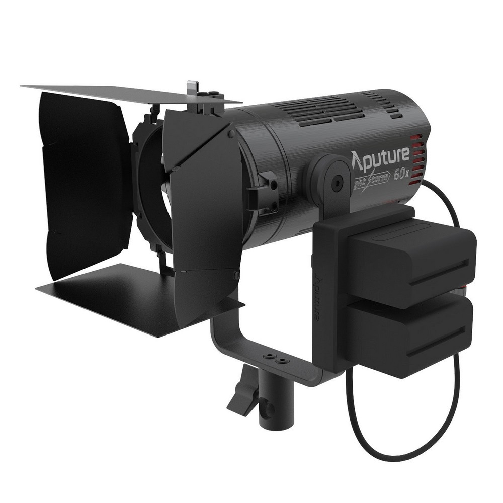 De stroomvoorziening biedt nog meer mogelijkheden. De Aputure Light Storm LS 60X is wereldwijd te gebruiken dankzij de meegeleverde 110-240V AC-adapter, maar hij werkt ook op 2 NP-F-type accu's of een V-mount accu in situaties waar geen netspanning beschikbaar is.