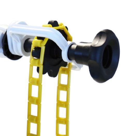 Er worden twee rolhouders geleverd. Bij de rolhouder zonder ketting vind je een draaiknop waarmee je kunt instellen hoe licht of zwaar het papier afrolt. Op de laatste foto zie je de draaiknop.