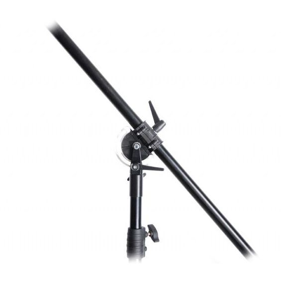 Een boomarm is ideaal om een model van boven te belichten, of om meer bewegingsvrijheid te creëren voor de foto- of videograaf. Deze boomarm-set wordt geleverd inclusief statief, boomarm, waterzak en tas. Hij kan universeel worden ingezet. Met het draaibare verbindingstuk kan de boomarm bovenop het meegeleverde statief geplaatst worden. De waterzak dient als contragewicht en wordt met een haak aan de buis gehangen, in deze zak kunnen flesjes water worden gezet die dienen als contragewicht. Een dubbele spigot wordt meegeleverd met een schroefdraad van 1/4" en 3/8". Hierdoor kunnen vrijwel alle lampen en accessoires met een standaard spigot aansluiting gebruikt worden op dit robuste statief. De spigot kan zowel van opzij als vooruit gestoken worden in de boomarm.