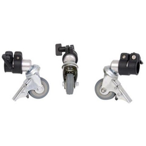 Handige zwenkwieltjes die passen op lampstatieven met een poot diameter van 19mm. De wieltjes zijn met rubber bekleed om eventuele krassen op de vloer te voorkomen.
