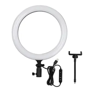 De LR120 wordt gevoed via USB, waardoor je hem eenvoudig aansluit op een powerbank, laptop of adapter. De meegeleverde houder in het midden van de ring is geschikt voor smartphones, zodat je handsfree kunt opnemen. Ideaal voor contentcreators, influencers en videobellers.