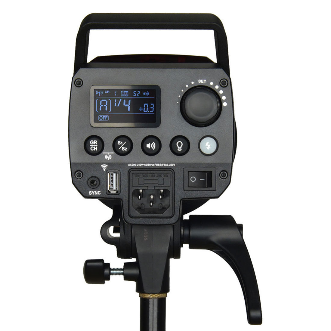 De MS300 biedt een nauwkeurige vermogensregeling van 1/32 tot 1/1 in 50 stappen, waardoor je het licht precies kunt afstemmen op je onderwerp. Het ingebouwde 150W instellicht is instelbaar van 5% tot 100%, zodat je de belichting vooraf kunt beoordelen en aanpassen.