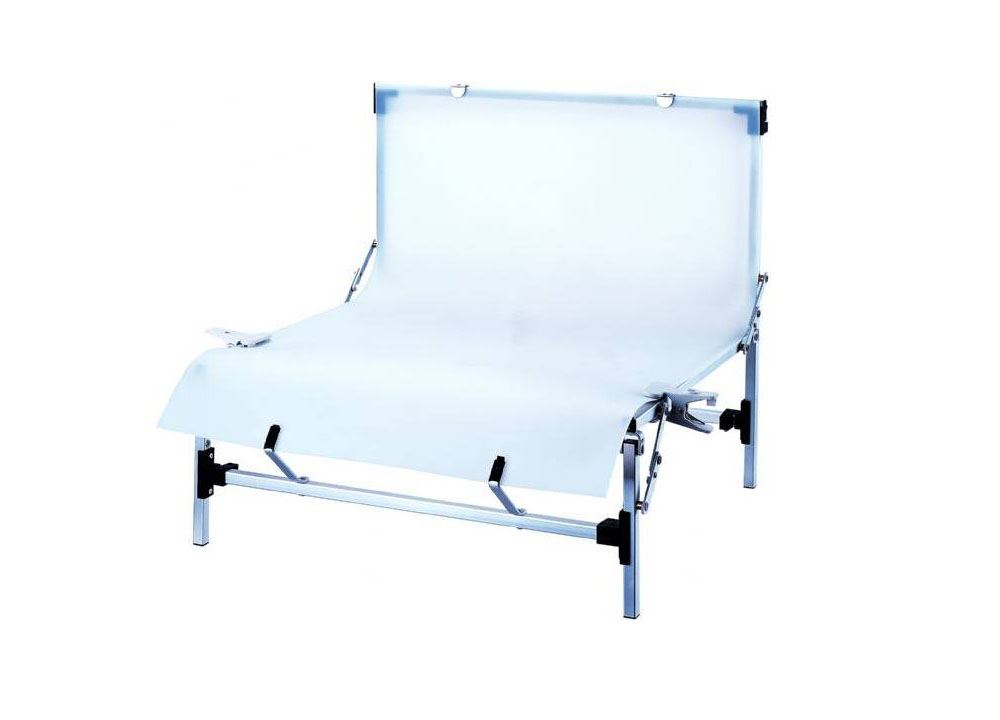 De tafel bestaat uit een frame met een semitransparante witte plaat, die niet teveel reflecteert. Indien gewenst is het mogelijk om een lichtbron aan de onderkant van de tafel te monteren, zodat de plaat oplicht. Dit neutraliseert ongewenste schaduwen van boven. Deze tafel is ideaal voor webshops en reclamedoeleinden, omdat je mooie, neutrale en schaduwloze foto's krijgt van je product.