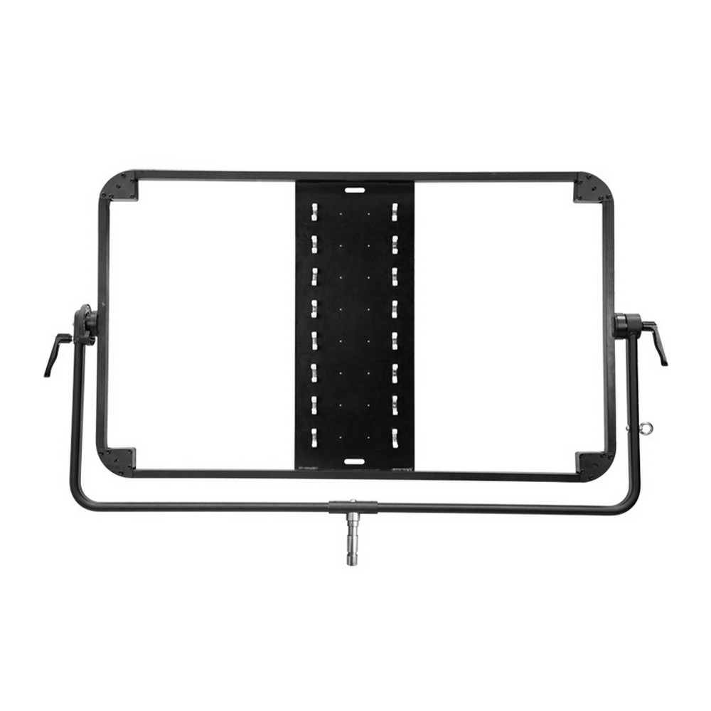Elke buis kan stevig op het frame worden bevestigd met twee clips op elke verticaal geplaatste rij. Het frame wordt ook geleverd met kabelbinders aan de achterkant, ontworpen voor de adapter, geplaatst voor een betere routing en het verbergen van alle draden. Het frame kan worden bevestigd op elk Junior Pin-lichtstatief. De softbox wordt ondersteund en op zijn plaats gehouden door 4 stevige en tegen hoge temperaturen bestendige stangen.
