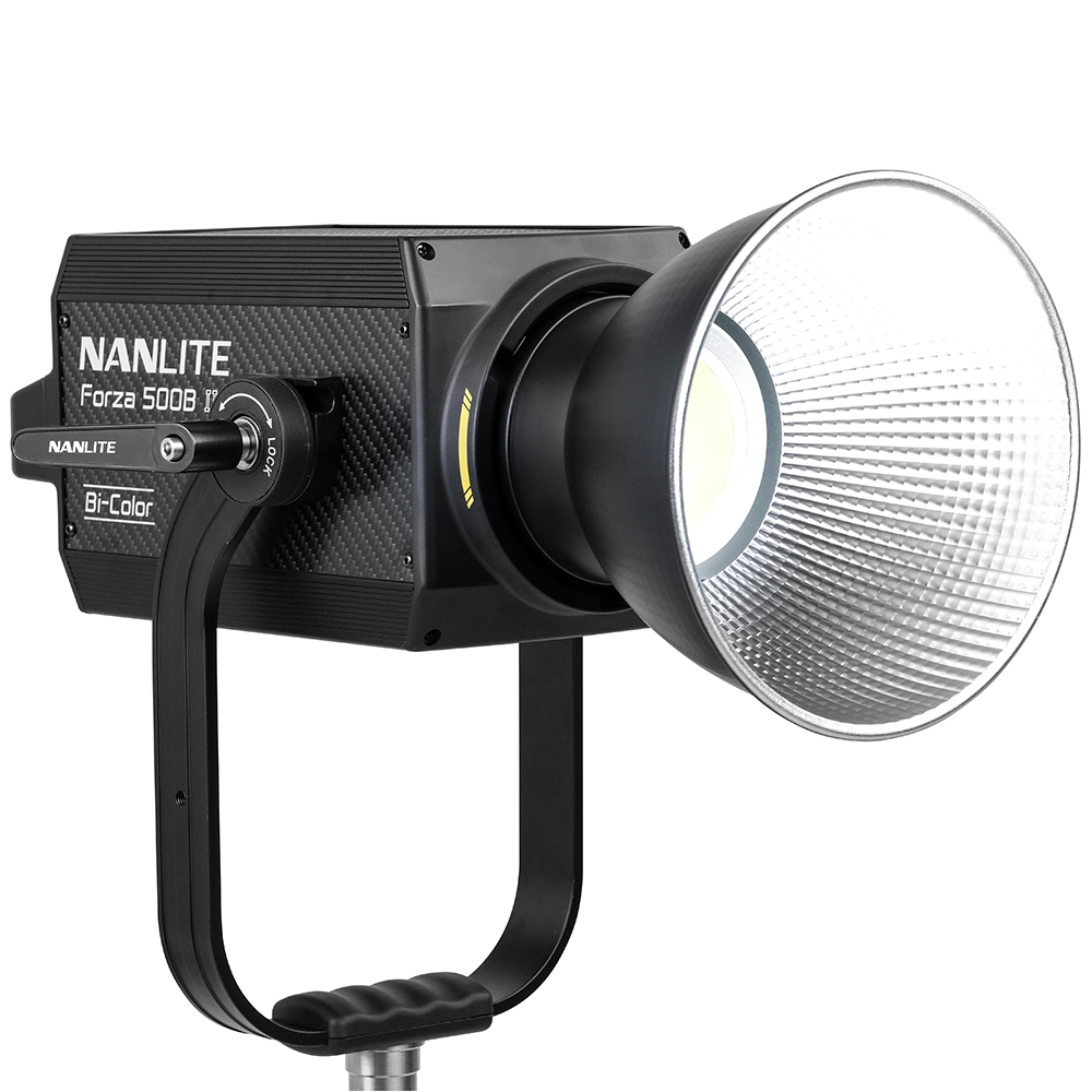 De Forza 500B II wordt geleverd met een verbeterd gebogen frame dat 360° rotatie mogelijk maakt voor een groter kantelbereik bij gebruik met optionele grote modifiers. Zijn basis is compatibel met zowel 5/8" baby pinnen als 1-1/8" junior pinnen en de Bowens bevestiging van de lamp werkt met een groot aantal lichtmodifiers. De lamp is klaar voor wereldwijd gebruik dankzij de 110 tot 240 VAC voeding, maar kan ook werken op optionele aan de zijkant gemonteerde 26V/14,8V V-mount batterijen in situaties waar geen stopcontact beschikbaar is. Een gevoerde draagtas wordt meegeleverd voor bescherming tijdens opslag en transport.