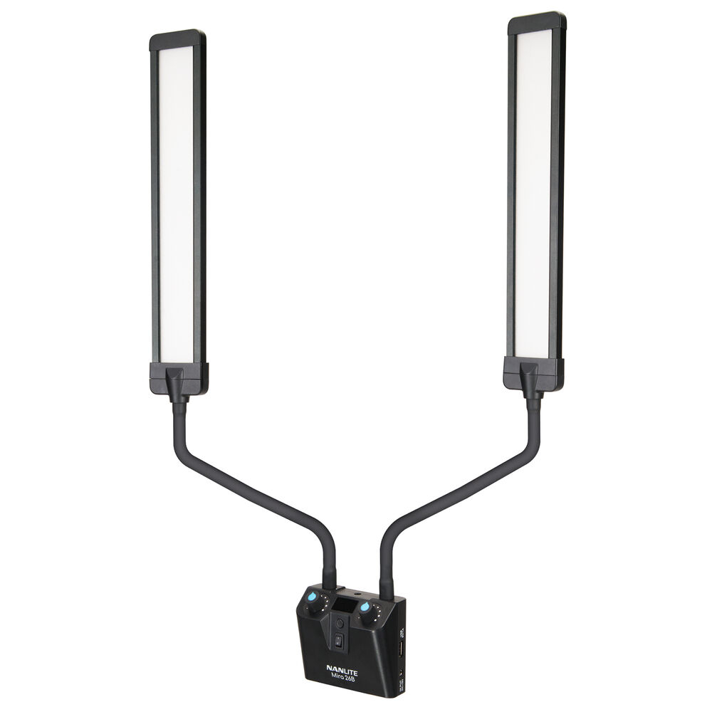De kleurtemperatuur van de Nanlite Mira 26B is variabel van 2700 tot 6500K. Je kunt deze dus perfect aanpassen aan bijvoorbeeld de kamerverlichting of omgevingslichtsituaties. Het dimmen is ook variabel, van 0 tot 100%. De lichten en armen zijn bevestigd aan een voedingsmodule met vrouwelijke schroefdraad, zodat de hele unit op de standaard kan worden gemonteerd. De Mira 26B is klaar voor wereldwijd gebruik via zijn universele, multi-voltage wisselstroomvoeding. Nanlite heeft ook een draagtas geleverd voor opslag en transport.