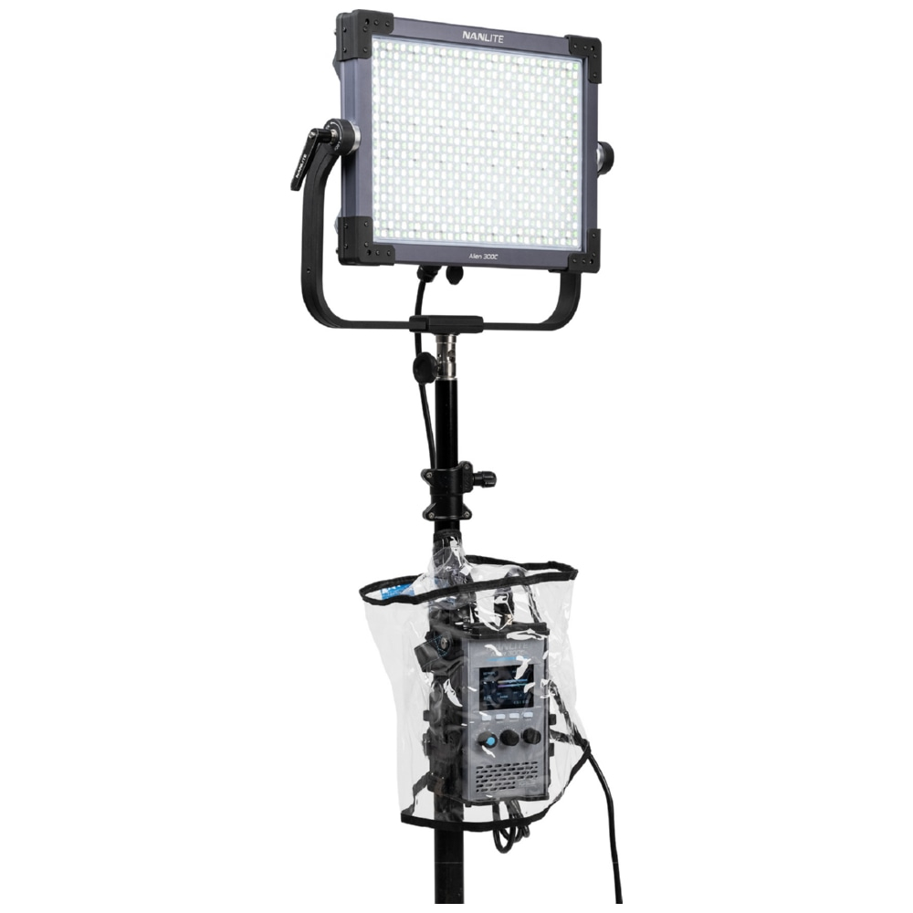 De Rain Cover is speciaal ontworpen voor de control units van de Nanlite Alien 150C en 300C. Het beschermt je apparatuur effectief tegen regen, sneeuw en andere weersomstandigheden, waardoor je niet hoeft te stoppen met filmen of fotograferen, ongeacht het weer. De hoes is waterdicht en biedt volledige bescherming tegen vocht.