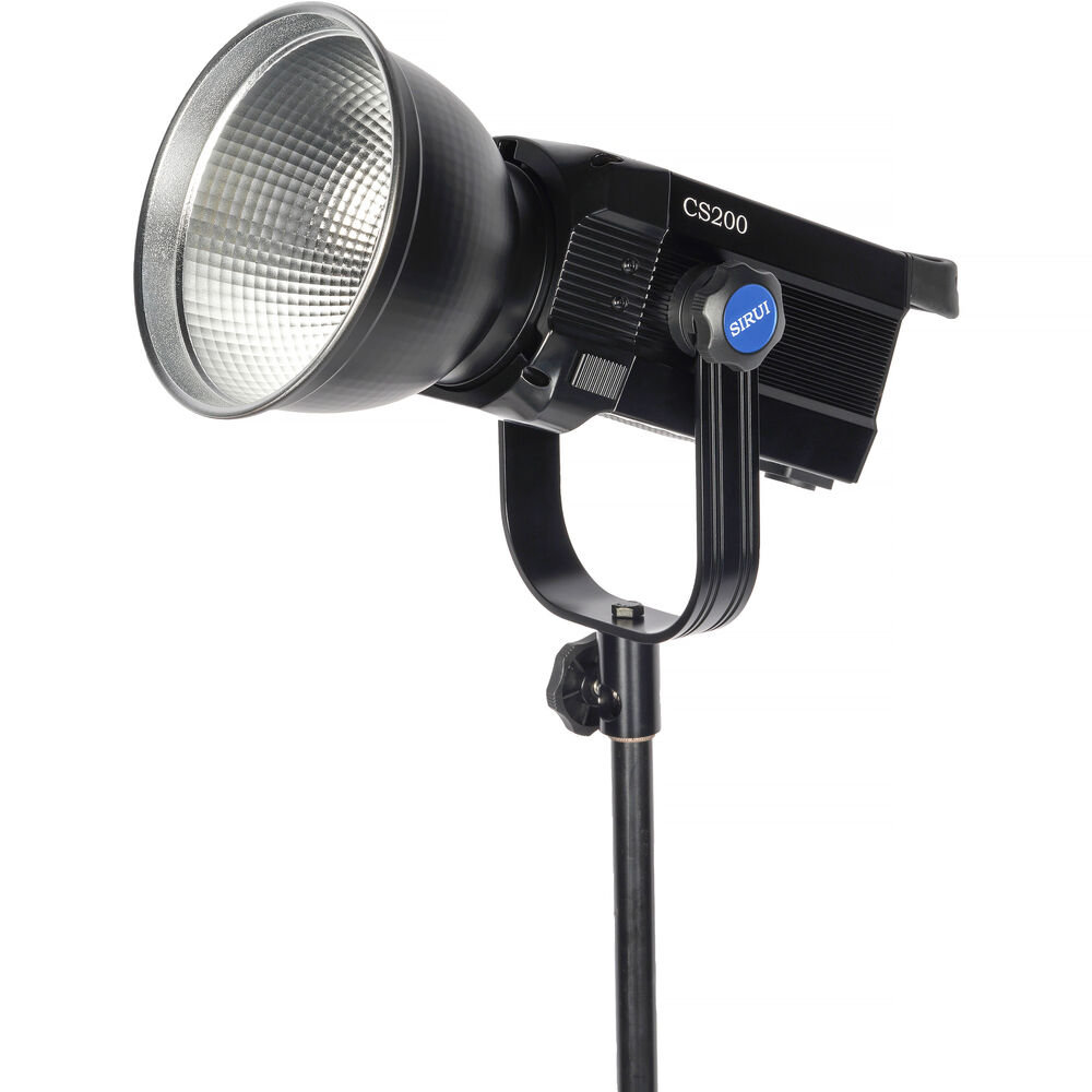 Je hebt de vrijheid om de CS200 te bevestigen met behulp van de spigot-aansluiting op elk lampstatief. Dat doe je met de beugel die aan de lamp vastzit. Deze beugel zorgt er ook voor dat je de lamp 360 graden draait, in elke denkbare positie. Met de metalen draaiknoppen aan de zijkant vergrendel je de gekozen positie. De CS200 wordt geleverd inclusief reflector en stroomadapter.