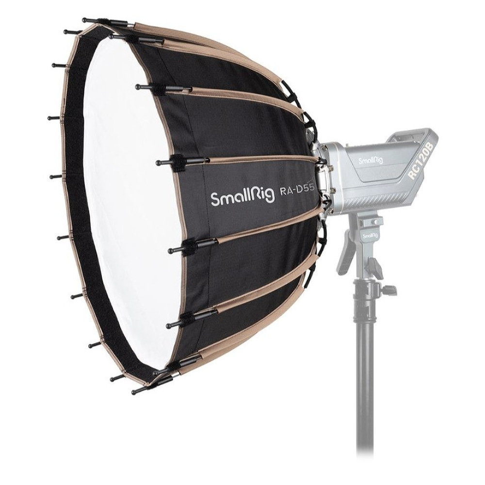 De SmallRig 3585 RA-D55 Parabolic Softbox is een veelzijdige lichtvormer die fotografen en videografen voorziet van zacht en gelijkmatig licht. Dankzij het innovatieve snelkoppelingsontwerp is deze softbox binnen slechts 15 seconden op te zetten of af te breken, wat tijd bespaart tijdens shoots.