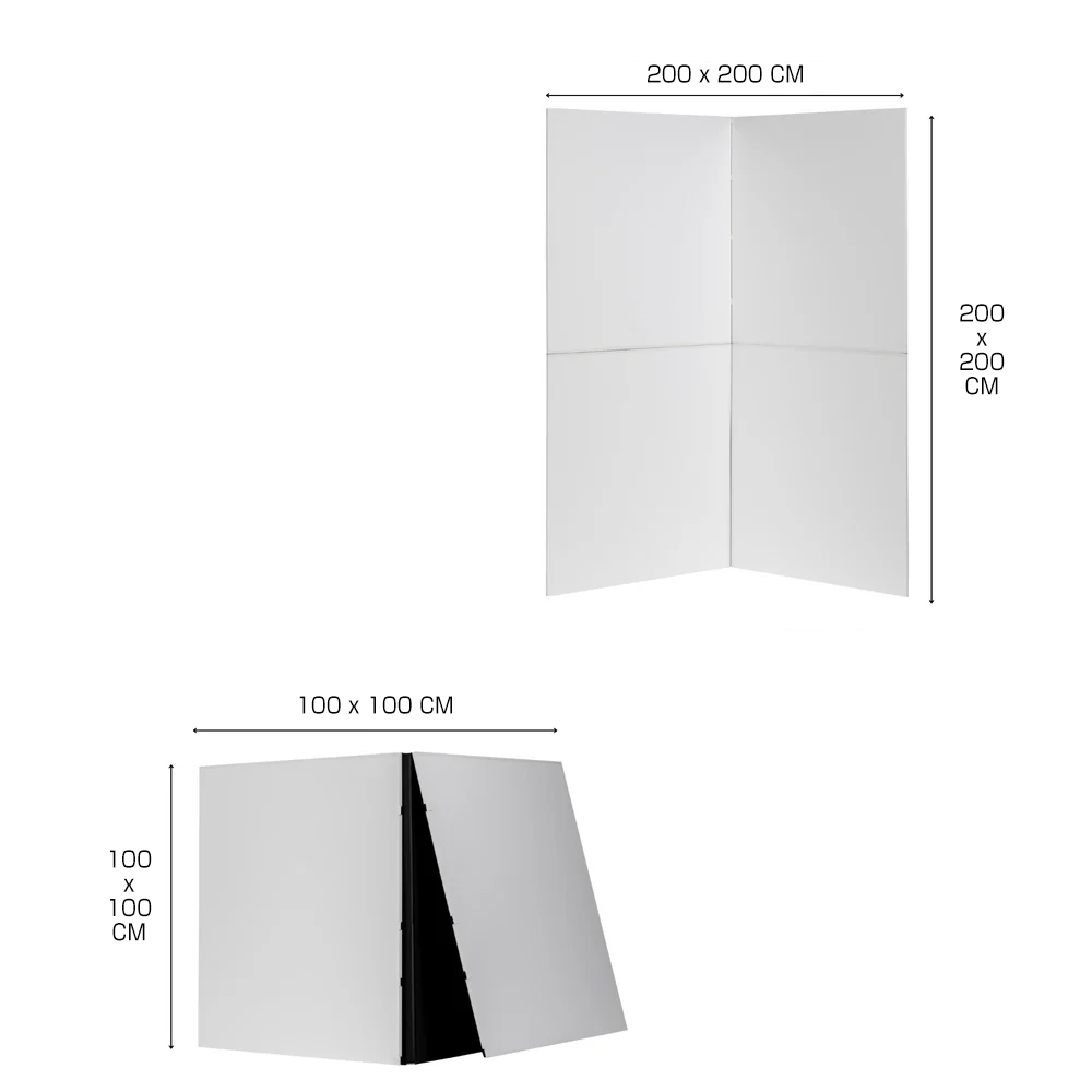 De V-Flat World Foldable V-Flat is een veelzijdige en draagbare lichtregelaar die perfect is voor elke fotoshoot. Met zijn afmetingen van 200 x 200 cm wanneer uitgeklapt, biedt deze V-Flat zowel witte als zwarte zijden, ideaal voor het reflecteren of absorberen van licht, het blokkeren van licht, of als achtergrond. Wanneer ingeklapt is hij slechts 100 x 100 cm, waardoor hij gemakkelijk mee te nemen is. Hij wordt geleverd met een handige draagtas en weegt slechts 3,18 kg, wat zorgt voor eenvoudige mobiliteit.