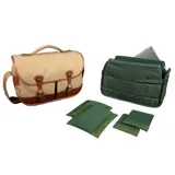 De buitenmaten van de fototas zijn 360mm x 160mm x 250mm en de inhoud is 6 liter. Het hoofdvak heeft de afmetingen 270mm x 100mm x 210mm. De tas is smaller aan de boven- en onderkant. De breedte is op het smalste punt ongeveer 270mm. De voering van deze cameratas is olijfgroen van kleur en wordt geleverd met een gewatteerd inzetstuk met meerdere losse dividers. In de tas kun je een kleine tot middelgrote DSLR- en systeemcamera's met 2 à 3 kleine tot middelgrote objectieven veilig opbergen en beschermen. Denk aan een Canon 5D MkIV (zonder batterijgrip), een spiegelloze camera zoals de Fujifilm X-T4, Sony a9ii, Canon R5 of de Nikon Z-7ii. Aan de achterkant van het uitneembare inzetstuk bevindt zich een gevoerde ruimte voor een 11 inch iPad of een vergelijkbaar kleiner apparaat. Het inzetstuk met dividers is uitneembaar waardoor je deze tas ook in enkele seconden om kunt toveren in een casual tas met een inhoud van 9 liter.