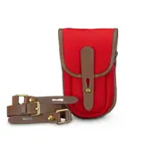 De tas wordt geleverd met een afneembare schouderriem, zodat je hem als sling kunt dragen. Daarnaast beschikt de achterkant over lederen bevestigingen, waarmee je de tas aan een riem kunt vastmaken voor een handsfree ervaring.
