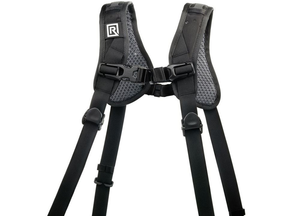 De Double Slim Breathe van riemenspecialist BlackRapid is een veelzijdig en degelijk harnas voor gebruikers met een wat kleiner postuur, voor het comfortabel dragen van maximaal twee camera's met bijbehorende objectieven. De basis bestaat uit twee forse schouderstukken, comfortabel door gebruik van gewatteerde stof met ventilerende mesh afwerking.