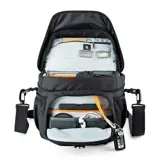 De Lowepro Nova 180 AW II is een bijzonder nuttige fototas voor zowel hobbyisten als professionele gebruikers, want de tas is gemaakt van slijtvast en oersterk nylon. Daardoor is deze cameratas een perfecte keuze voor intensief gebruik. De meegeleverde schouderriem heeft karabiners voor een veilige bevestiging aan de tas en de zachte afwerking van het schouderstuk maakt het dragen van de Nova 180AW II erg comfortabel. Aan het gepolsterde handvat til je de fototas snel en gemakkelijk op. En voor de fotograaf die veel onderweg is, heeft Lowepro het mogelijk gemaakt om de Nova 180AW II middels de speciale lus achterop veilig op een trolley te vervoeren.