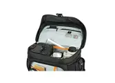 De ruime Lowepro Nova 200 AW II is zo multi-inzetbaar dat de vraag gerechtvaardigd is of deze fototas soms een gereedschapskist voor fotografen is. Het interieur is geheel naar eigen wens in te delen met de gepolsterde dividers en dankzij de grote hoeveelheid opbergvakken kun je alles meenemen wat je wilt. De binnenkant van het deksel is voorzien van speciale vakjes voor geheugenkaarten en aan de buitenzijde bevindt zich een zeer ruim voorvak voor extra accessoires zoals reserveaccu's, laders, kabels of een handleiding. Aan de buitenzijde van de klep is bovendien een ritsvak aanwezig voor bijvoorbeeld een mobiele telefoon. In de gaasnet zijvakken aan de zijkant van de Nova 200 AW II passen spullen die je snel bij de hand wilt hebben, maar je kunt ook de afneembare draagriem er in opbergen als je de tas op een trolley vervoert. De tas wordt afgesloten met een dubbele sluiting die bestaat uit degelijke ritsen én een clipsluiting. Die clipsluiting is handig als je tussen twee fotomomenten even snel je tas wilt afsluiten, maar geen zin hebt om alles dicht te ritsen.
