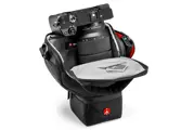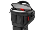 Manfrotto is vooral bekend van de extreem degelijke statieven maar het Italiaanse bedrijf maakt veel meer uitstekende producten voor de veeleisende fotograaf. Zoals een serie fraaie, degelijke en doordachte cameratassen. Een mooi voorbeeld is deze Advanced Holster XS Plus; een compacte tas voor een systeemcamera met kitlens, een extra lens en accessoires. Bijzonder is het dat de camera en de lens zich in gescheiden compartimenten bevinden, de camera bovenin en de lens onderin.