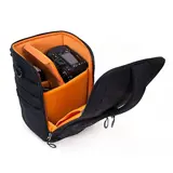 Doordat de klep van het lichaam af opent, biedt het snelle toegang tot de camera. Op de klep bevindt zich een comfortabel handvat waarmee u de tas even snel meepakt.