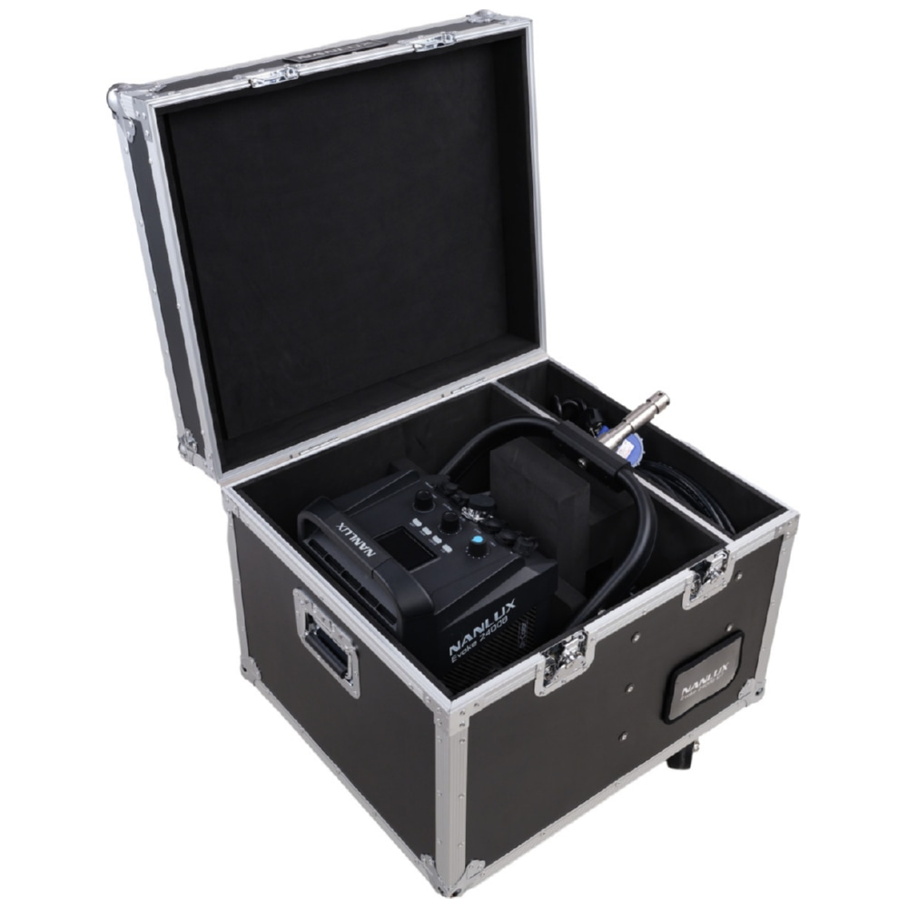 Berg je Nanlux Evoke 2400 serie lamp, voedingsadapter, stroomkabel en juk veilig op in de efficiënt bemeten en robuuste Nanlux Flight Case NX-CC-EV2400-FT. Deze flight case is gemaakt van duurzame, slagvaste gegoten aluminiumlegering, waardoor je apparatuur optimaal beschermd is.