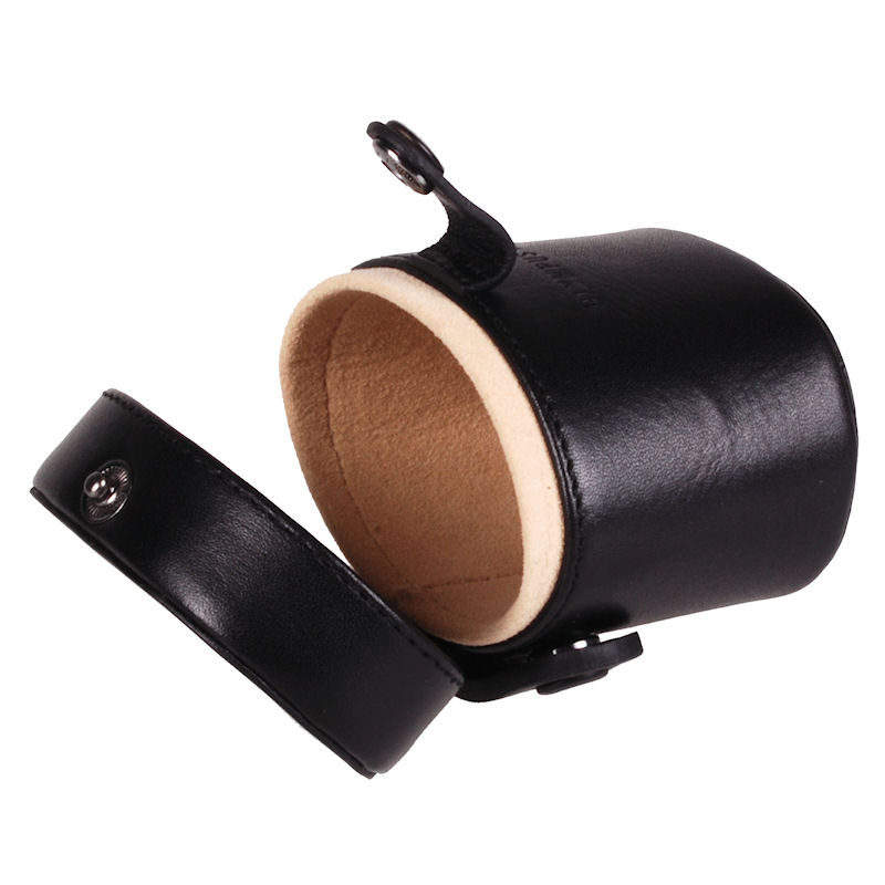 Draag je accessoires veilig en comfortabel met je mee met deze zwartleren tas.