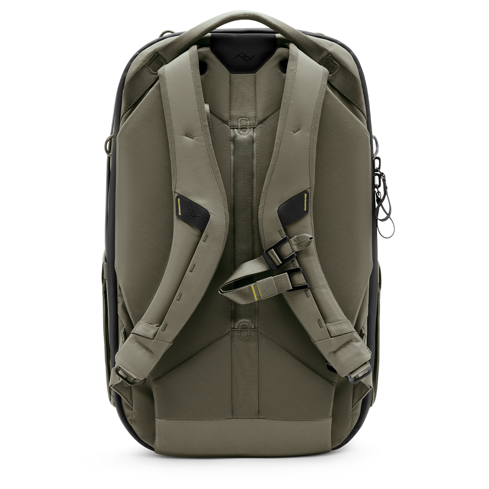 De Travel Backpack is ontworpen om te voldoen aan handbagage-eisen, terwijl je toch voldoende ruimte hebt voor je spullen. Dankzij de slimme indeling en brede opening pak je efficiënt in en heb je snel toegang tot je gear.