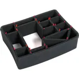 Inbegrepen in deze verdelerset zijn één omtrek-inzetstuk, twee 13,75-inch secties, twee 20-inch secties, een 6-inch ssectie, 20 vergrendelingspennen, een scheidingsmes en schuim voor de boven- en onderkant. Om ervoor te zorgen dat de verdelers goed overeenkomen met de 19 cm interne hoogte van een Pelican 1550-handbagagebeschermer, moet de onderste schuimeenheid altijd worden gebruikt bij het installeren van deze verdelerset. De omtrek-inzetstukken kunnen dan bovenop de onderste schuimstukken worden geplaatst zodat ze samen de binnenzijden van de Pelican-kast bedekken. Net als de verdelers zijn de omtrek-inzetsecties gemaakt van schuim met een gegolfde kern, zodat een scheidingswand kan worden verbonden met de omtrek-inzetsecties door een vergrendelingspen van de verdeler.