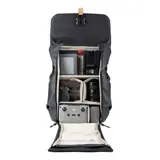 De gevoerde binnenkant van de tas kun je zelf indelen met de bijbehorende scheidingswanden met verschillende formaten. De drie verschillende scheidingswanden zijn vouwbaar en te plaatsen zoals jij dat wilt. Zo kun je flexibel omgaan met de beschikbare ruimte zodat de hele uitrusting erin past. Aan de rugzijde van de rugzak zit een vak voor een 15-inch laptop waar ook een 12 inch tablet bij in past. De gewatteerde verdeler zorgt dat de twee apparaten elkaar niet raken. De flap om de tas te sluiten heeft een magnetische instant-gesp, geleverd door FitLock, voor snelle toegang en veiligheid.