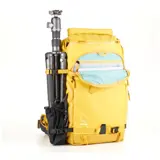 De gele Action X30 V2 rugzak van Shimoda Designs biedt fotografen een compacte en duurzame draagoplossing met een capaciteit van 30 liter. De rugzak biedt snelle toegang tot je uitrusting, waardoor hij ideaal is voor actieve opnamesituaties. De rugzak heeft twee gewatteerde vakken die laptops of tablets tot 14" veilig kunnen opbergen en beschermen. Dankzij de rolsluiting kun je het volume eenvoudig vergroten of verkleinen, afhankelijk van je specifieke behoeften. De rugzak heeft ook meerdere bevestigingsriemen, waaronder TPU compressiebanden voor extra duurzaamheid bij het bevestigen van grote voorwerpen zoals ski's. Daarnaast is er een afneembare helmhouder inbegrepen, zodat je een fiets- of skihelm aan de buitenkant van de rugzak kunt bevestigen.