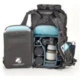 De zwarte Action X40 V2 rugzak van Shimoda Designs biedt fotografen een compacte en duurzame draagoplossing met een capaciteit van 40 liter. De rugzak biedt snelle toegang tot je uitrusting, waardoor hij ideaal is voor actieve opnamesituaties. De rugzak heeft twee gewatteerde vakken die laptops of tablets tot 16" veilig kunnen opbergen en beschermen. Dankzij de rolsluiting kun je het volume eenvoudig vergroten of verkleinen, afhankelijk van je specifieke behoeften. De rugzak heeft ook meerdere bevestigingsriemen, waaronder TPU compressiebanden voor extra duurzaamheid bij het bevestigen van grote voorwerpen zoals ski's. Daarnaast is er een afneembare helmhouder inbegrepen, zodat je een fiets- of skihelm aan de buitenkant van de rugzak kunt bevestigen.
