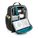 De insert is voorzien van verwijderbare verdelers waarmee je deze vrij kunt indelen. Diverse zakken bieden plaats aan kleine accessoires en de zachte geborstelde tricot binnenbekleding zorgt voor een uitstekende bescherming van de apparatuur.