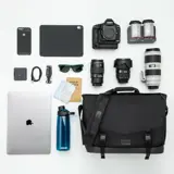De camera en objectieven passen in de uitneembare gewatteerde insert met configureerbare verdelers. Als je je camera-apparatuur niet mee wil nemen, kun je de insert verwijderen en de tas gebruiken als een normale schoudertas. Je draagt de tas over je schouder of aan het handvat dragen of plaats deze bovenop een trolley. Een verstelbare veiligheidsstrap, die bevestigd wordt door middel van D-ringen, houdt de tas op je rug tijdens het lopen of fietsen.