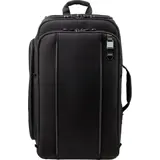 Strakke lijnen en een high-end bagage-esthetiek met minimale branding zorgen voor een professionele uitstraling zonder ongewenste aandacht te trekken naar de apparatuur binnenin.