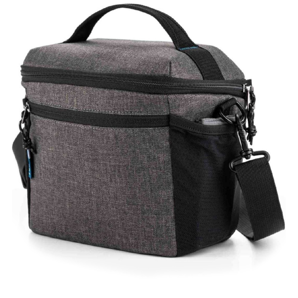 De tas biedt ruimte aan één camerabody en één tot twee lenzen, waardoor het eenvoudig is om je essentiële uitrusting te vervoeren. Het interieur van de tas beschikt over een met rits afsluitbaar vak voor het opbergen van SD-kaarten, batterijen, microvezeldoekjes en andere kleine items. De zijdelingse mesh zakken kunnen worden uitgebreid om waterflessen en andere items te accommoderen.
