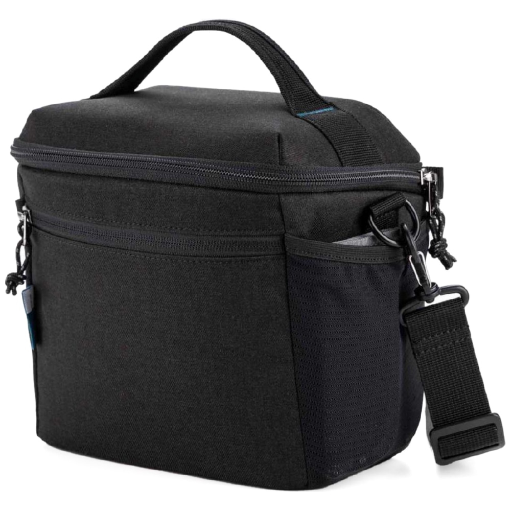 De tas biedt ruimte aan één camerabody en één tot twee lenzen, waardoor het eenvoudig is om je essentiële uitrusting te vervoeren. Het interieur van de tas beschikt over een met rits afsluitbaar vak voor het opbergen van SD-kaarten, batterijen, microvezeldoekjes en andere kleine items. De zijdelingse mesh zakken kunnen worden uitgebreid om waterflessen en andere items te accommoderen.
