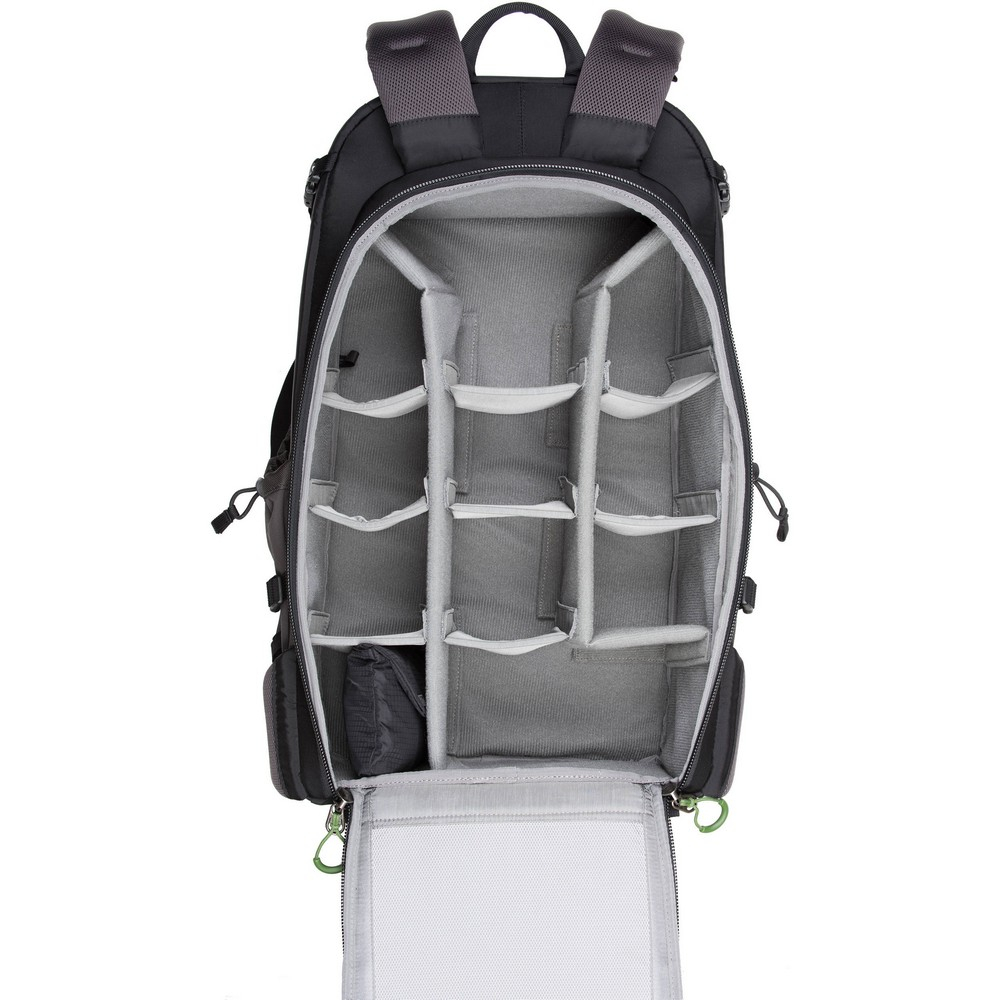 Het camera-compartiment biedt plaats aan twee spiegelreflexcamera's met vier tot zes standaard zoomobjectieven plus een reportageflitser of twee grote systeemcamera's met zes tot acht objectieven en een reportageflitser. In het voorste compartiment met een inhoud van elf liter kunt je jouw persoonlijke spullen opbergen. Daarnaast is het mogelijk om een objectief ter grootte van een 600mm f/4.0 los van de body mee te nemen. In het voorste compartiment bevindt zich ook een gevoerde sleeve voor een 15 inch laptop en een 10 inch tablet. Aan beide zijden van de rugtas bevindt zich een elastisch vak voor bijvoorbeeld een fles water, handschoenen of een muts. Vakken op de voorzijde kunt u gebruiken voor het opbergen van kleine accessoires zoals accu's, lader of een zaklamp. Lussen op de tas maken het mogelijk om uw statief of monopod veilig mee te nemen.