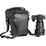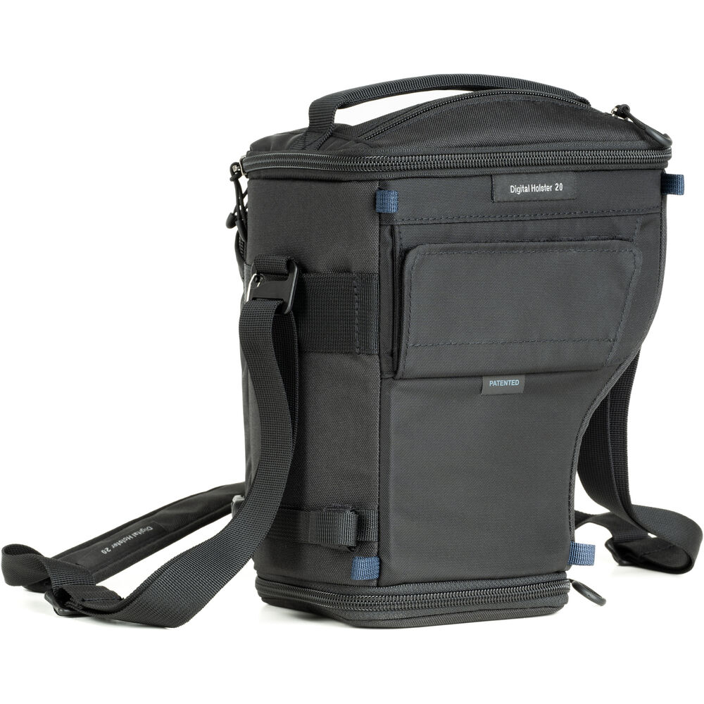 De Think Tank Digital Holster 20 V3.0 is ontworpen om een standaard systeemcamera met een 24-70mm lens te beschermen. Met een instelbare binnenhoogte van 20 cm tot 31,2 cm en de "pop down"-functie kan de holster worden uitgebreid om ook een 70-200mm f/2.8 lens te passen. Voorzien van een afneembare antislip schouderriem en een riembevestiging, biedt deze holster handige toegang en bescherming. Extra vakken voor accessoires en een regenhoes maken het geheel compleet voor de actieve fotograaf.