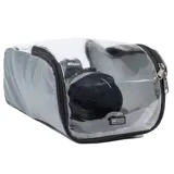Een set van drie doorzichtige plastic organizer cubes past netjes in het verdeelde hoofdcompartiment van de Freeway Longhaul Carryall Duffel.