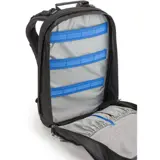 De rugzak heeft aparte laptop- en tabletcompartimenten en een ruim hoofdcompartiment met ritssluiting. Aan de voorkant van de rugzak bevindt zich een vak voor de basis van een klein statief en verstelbare banden om de bovenste en onderste delen vast te zetten. Extra opbergruimte wordt geboden door buitenvakken, een organizerpaneel en een pluche vak voor een mobiele telefoon met een display tot 5,5 inch.