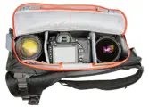 Een slingbag hangt met een enkele draagriem diagonaal op je rug, van de ene schouder tot de heup aan de andere kant van je lichaam. De PhotoCross 10 zit comfortabel op je rug door het gebruik van ademend 320G air-mesh materiaal op de achterkant. De tas is voorzien van handgrepen op zowel de bovenkant als de zijkant, zodat je hem altijd gemakkelijk op kunt tillen. Je kunt de uittrekbare heupriem gebruiken om de tas op je rug te fixeren, ideaal bij ruw terrein of het beklimmen van heuvels of bergen. De tas is waterafstotend maar beschikt ook over een ingebouwde regenhoes.